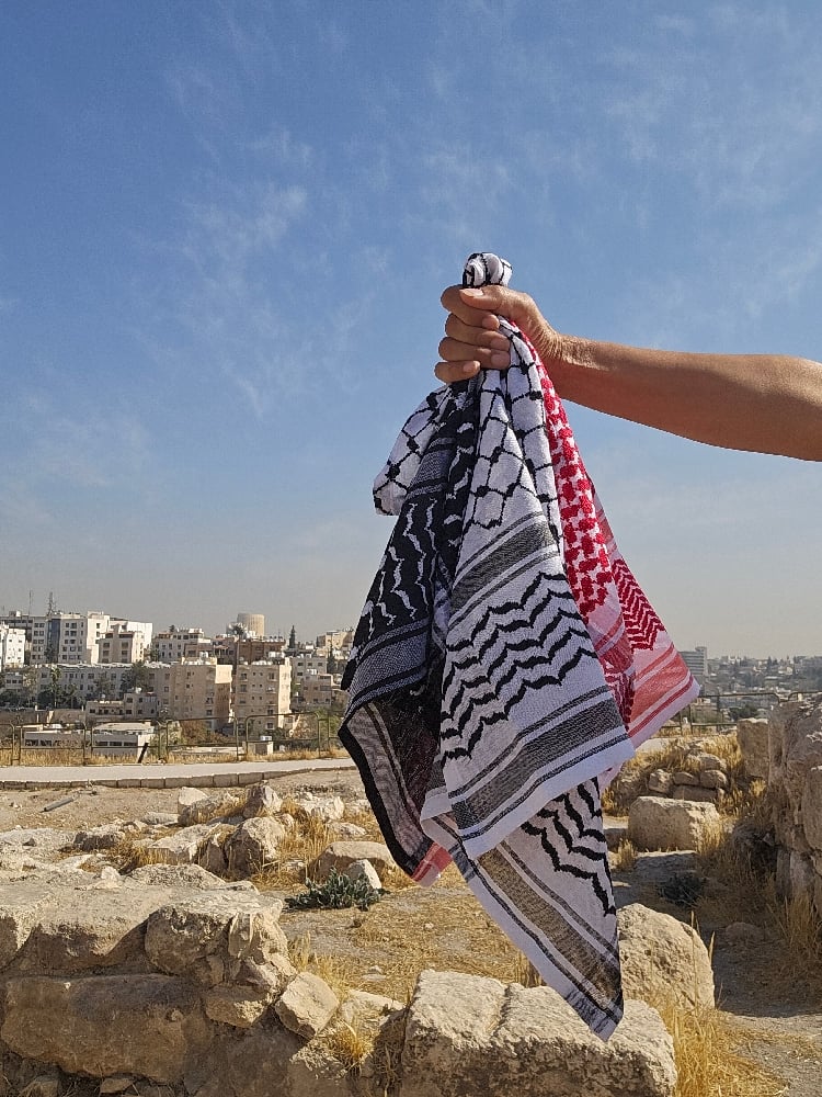 Handmade with care by our skilled Palestinian tailor in Jordan, this bandana is a perfect symbol of unity. Each piece is unique, with slight variations in print and minor imperfections that add to its charm.