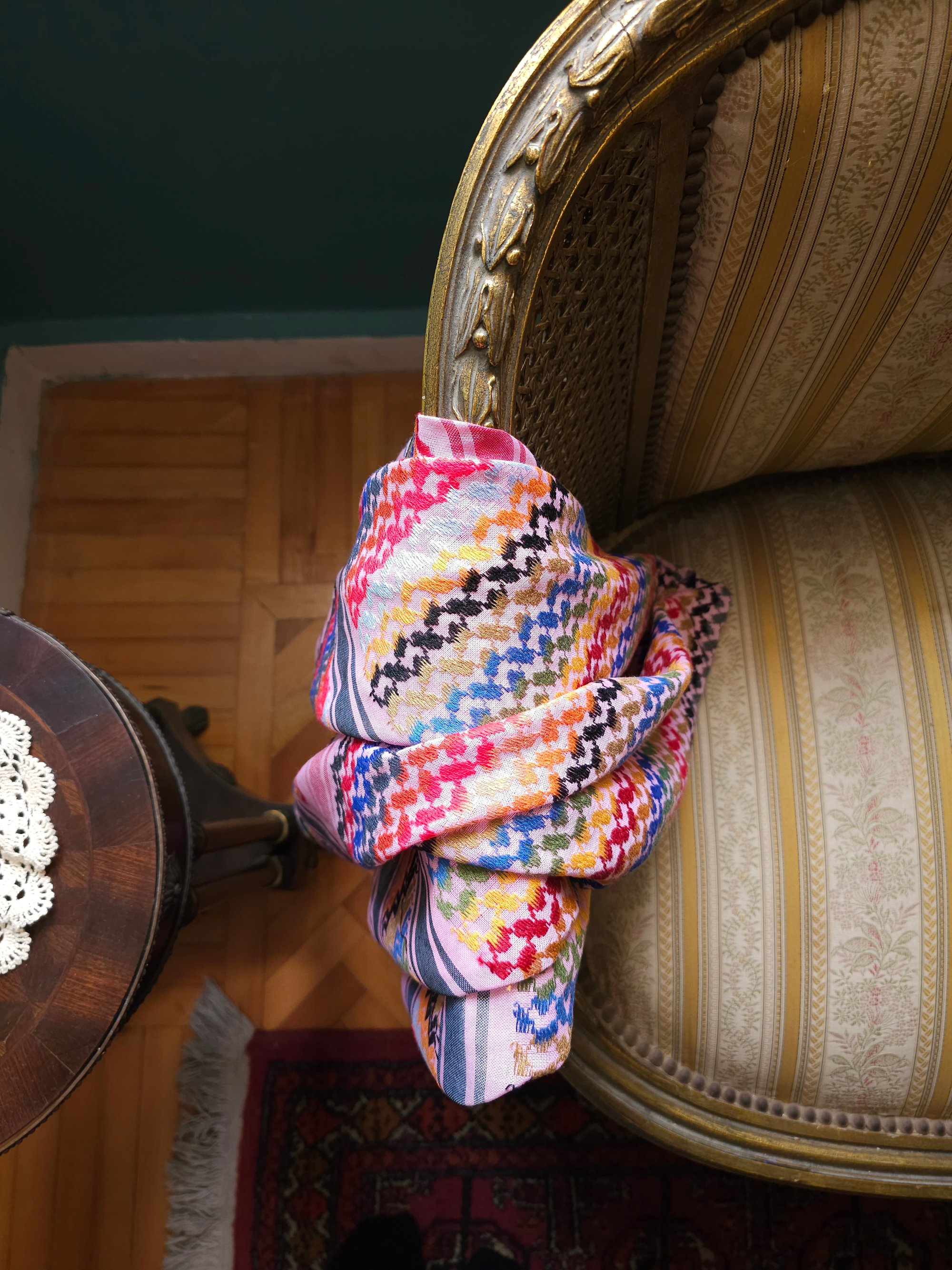 Wrap yourself up in these very unique and beautifully made, high quality Jordanian Keffiyeh in solidarity with the people of Palestine. Made with high quality materials, these Keffiyeh are embroidered in stunning colour against a refreshing background. A culturally significant emblem, Keffiyehs have become popular around the world as a symbol of solidarity with the Palestinian people.