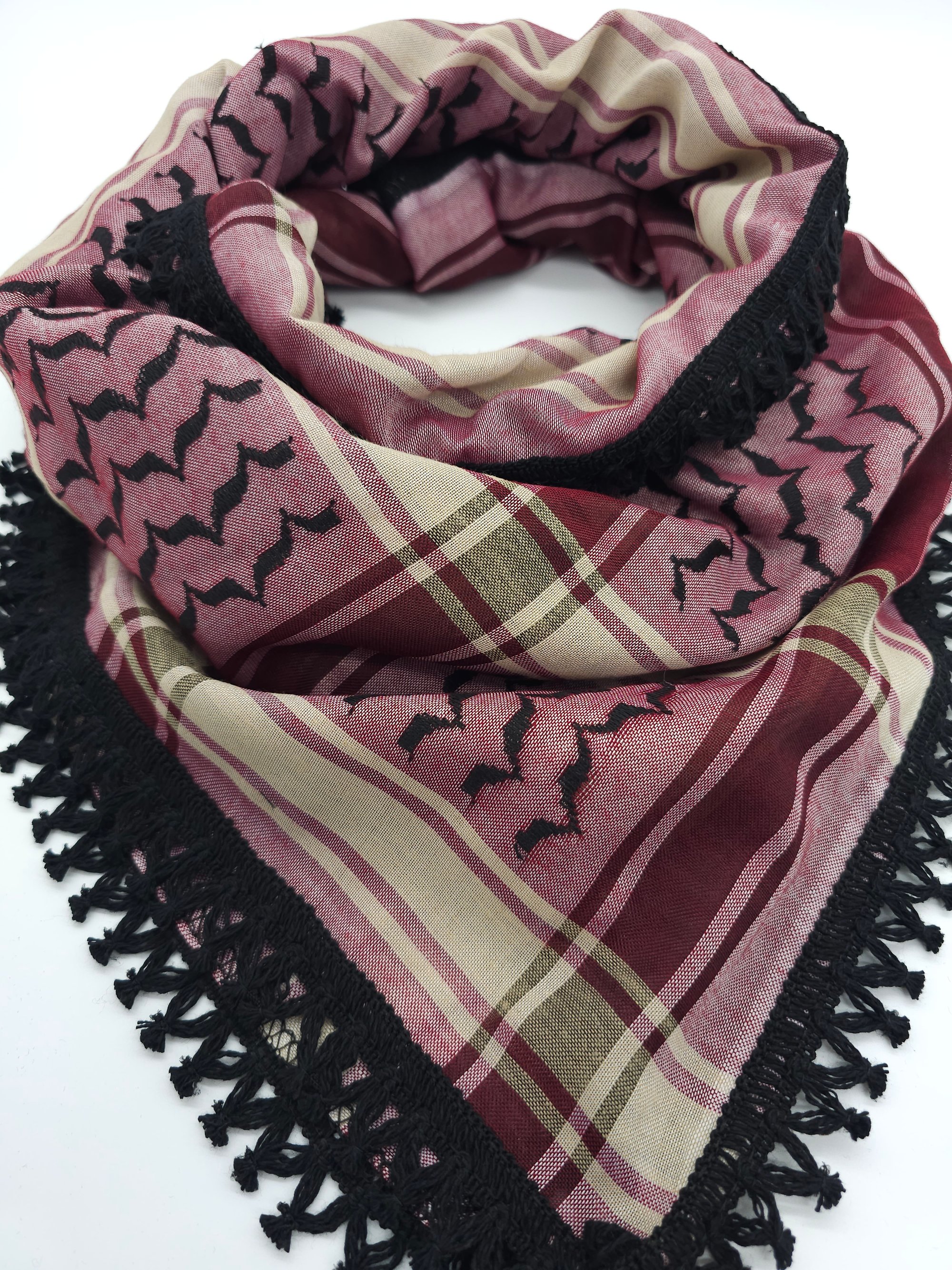 Maroon with Black Tassel Keffiyeh