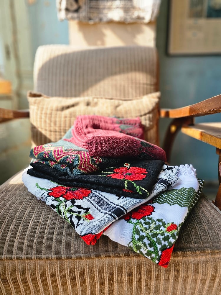 The soft folds of these Keffiyeh tell a story of the greatest fight for freedom of our time. Stitched with tales of the land, it's history, and the people who long to be free to return home, these Keffiyeh have journeyed from Hebron, to Ramallah, to the villages of Palestine, to Amman (Jordan) and then made their way to you.