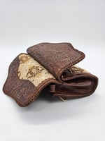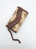Every stitch is done by hand, making each piece truly one of a kind. Thoughtfully designed, the clutches are reversible and feature a convenient arm strap.